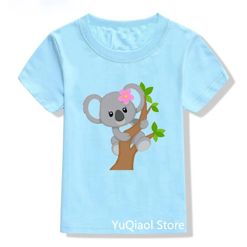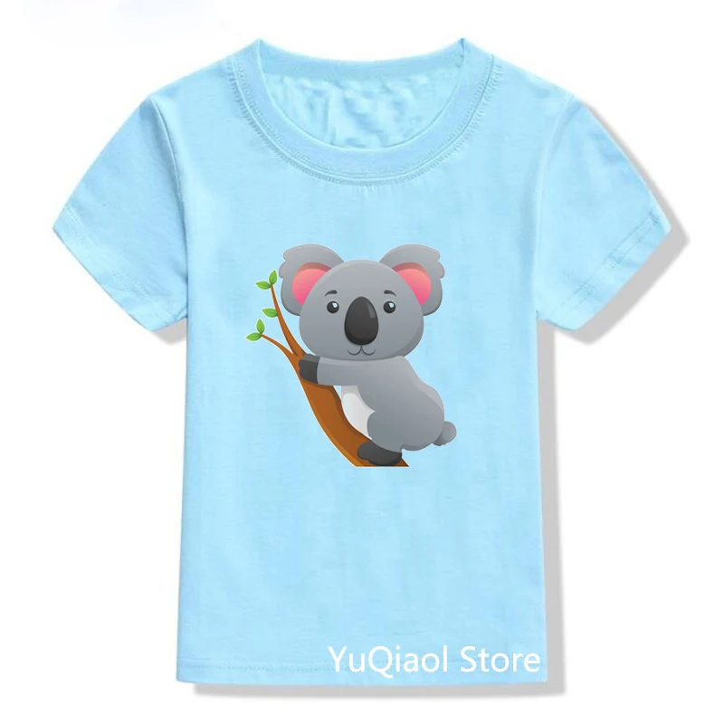 Футболка детская с принтом животных, милый мультяшный Коалапанда, голубая рубашка для мальчиков, топ, унисекс, одежда на лето