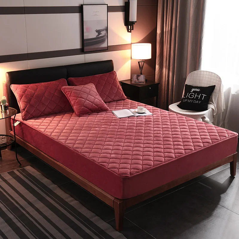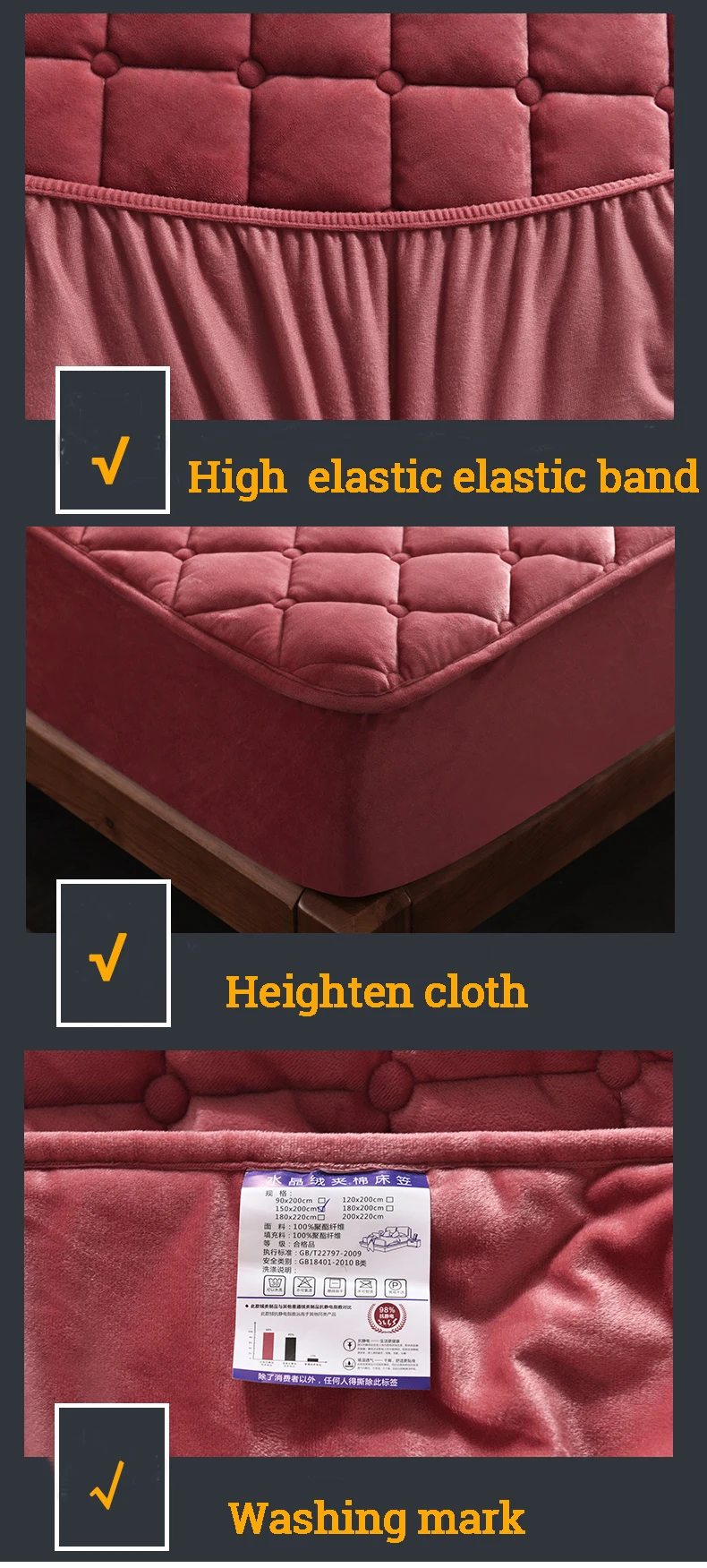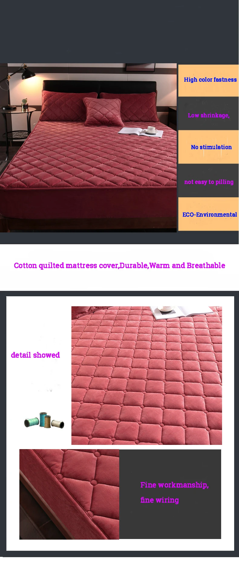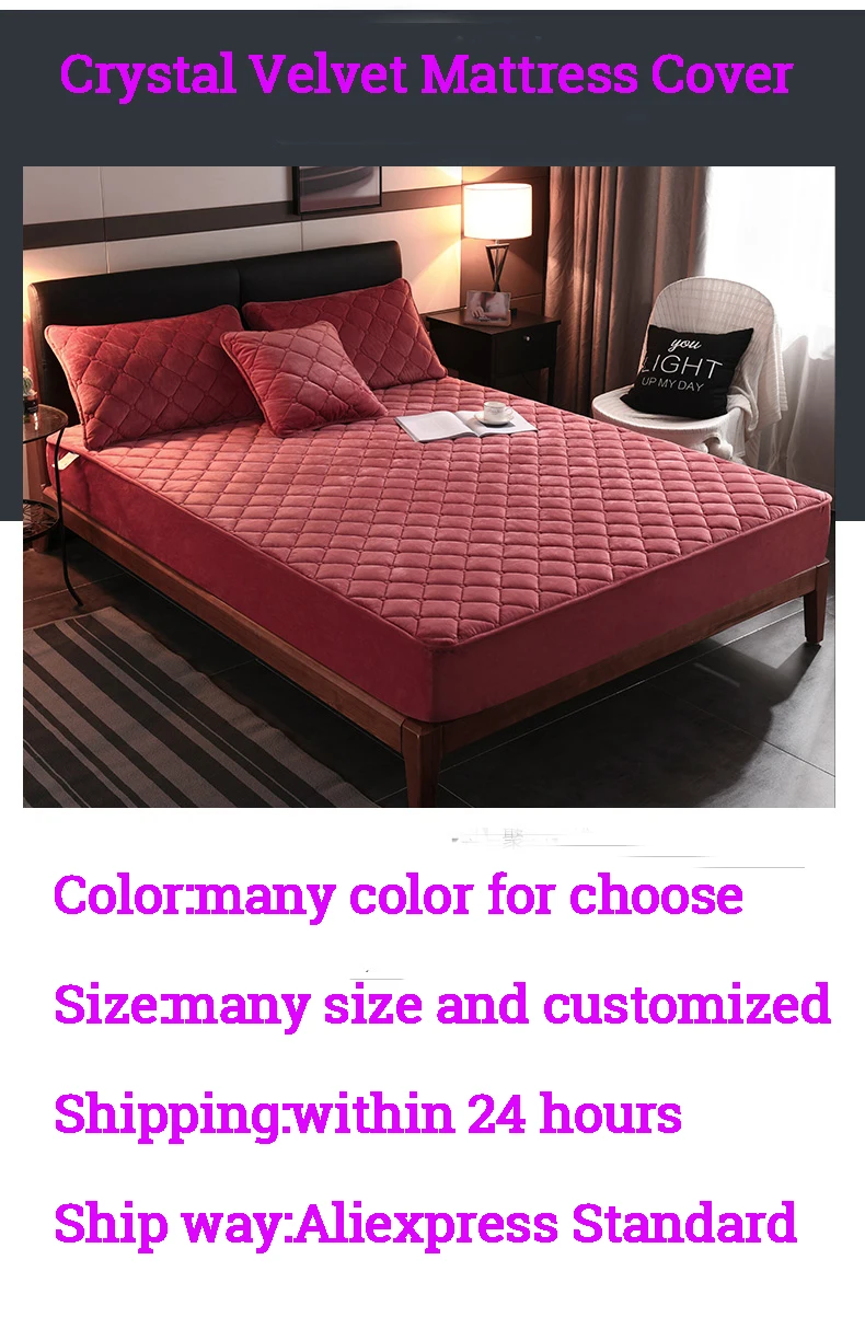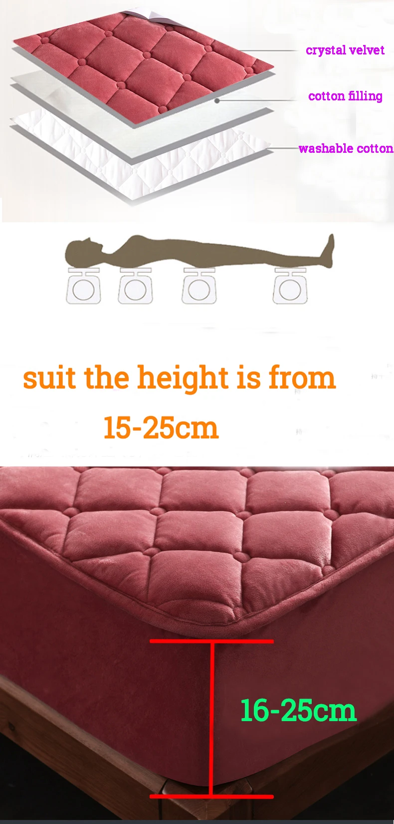 Плюшевый утолщенный стеганый наматрасник 135*190*30 см, теплый мягкий бархатный стеганый наматрасник King Queen, простыня, однотонный наматрасник