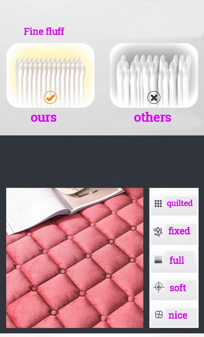 Материал: Хрустальный бархатРазмер: 135*190*30 смЦвет: розовый, фиолетовый, коричневый, синий и т. д.Высота: подходит для детей от 26 до 36 смЭто только наматрасник, наволочка в комплект не входит