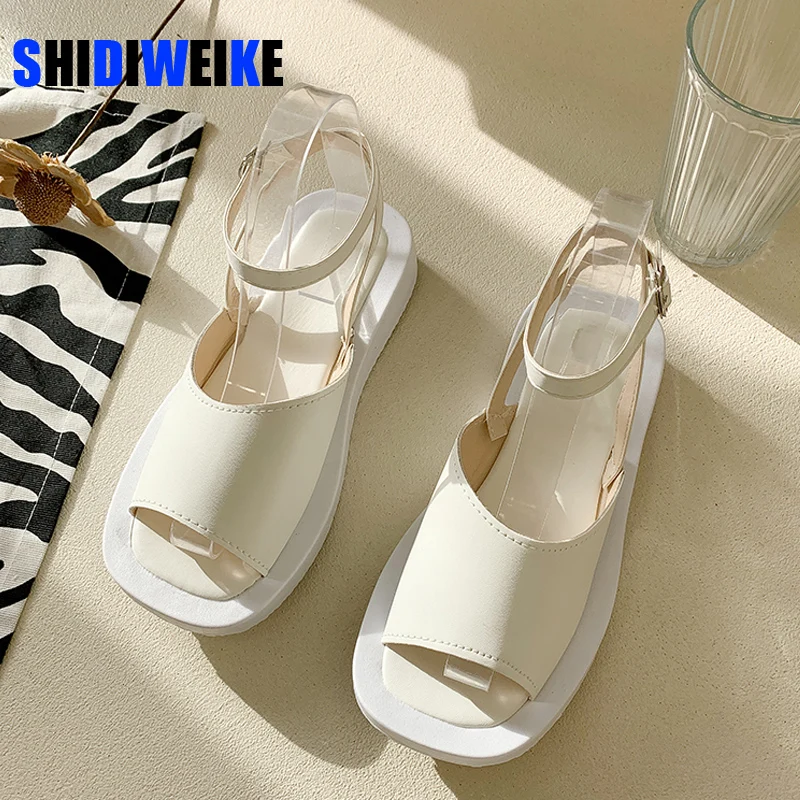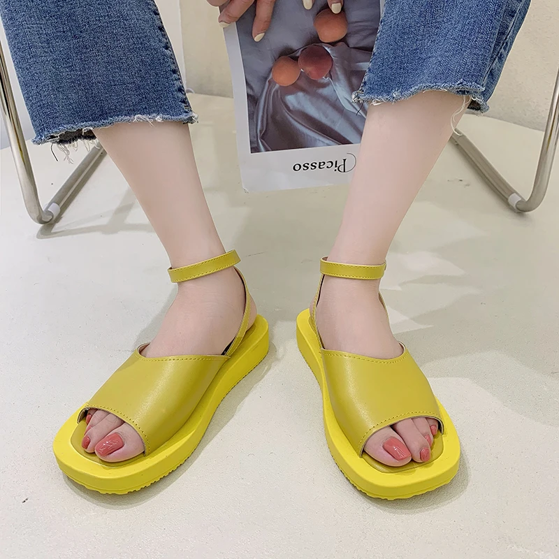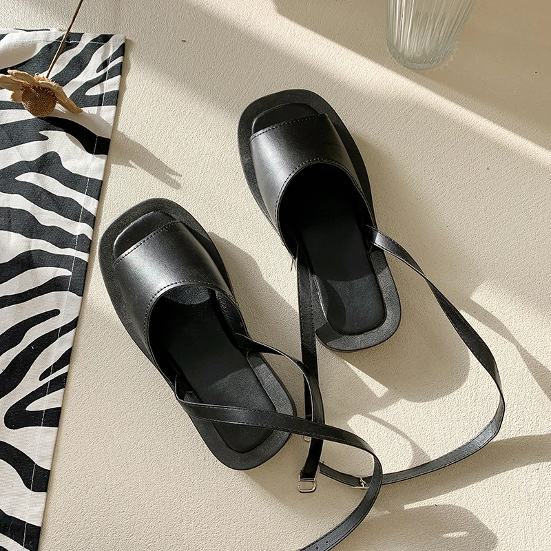 Женские кожаные босоножки на платформе, черные туфли на толстой подошве, с перекрестными ремешками на щиколотке и пряжкой, AD120, 2021