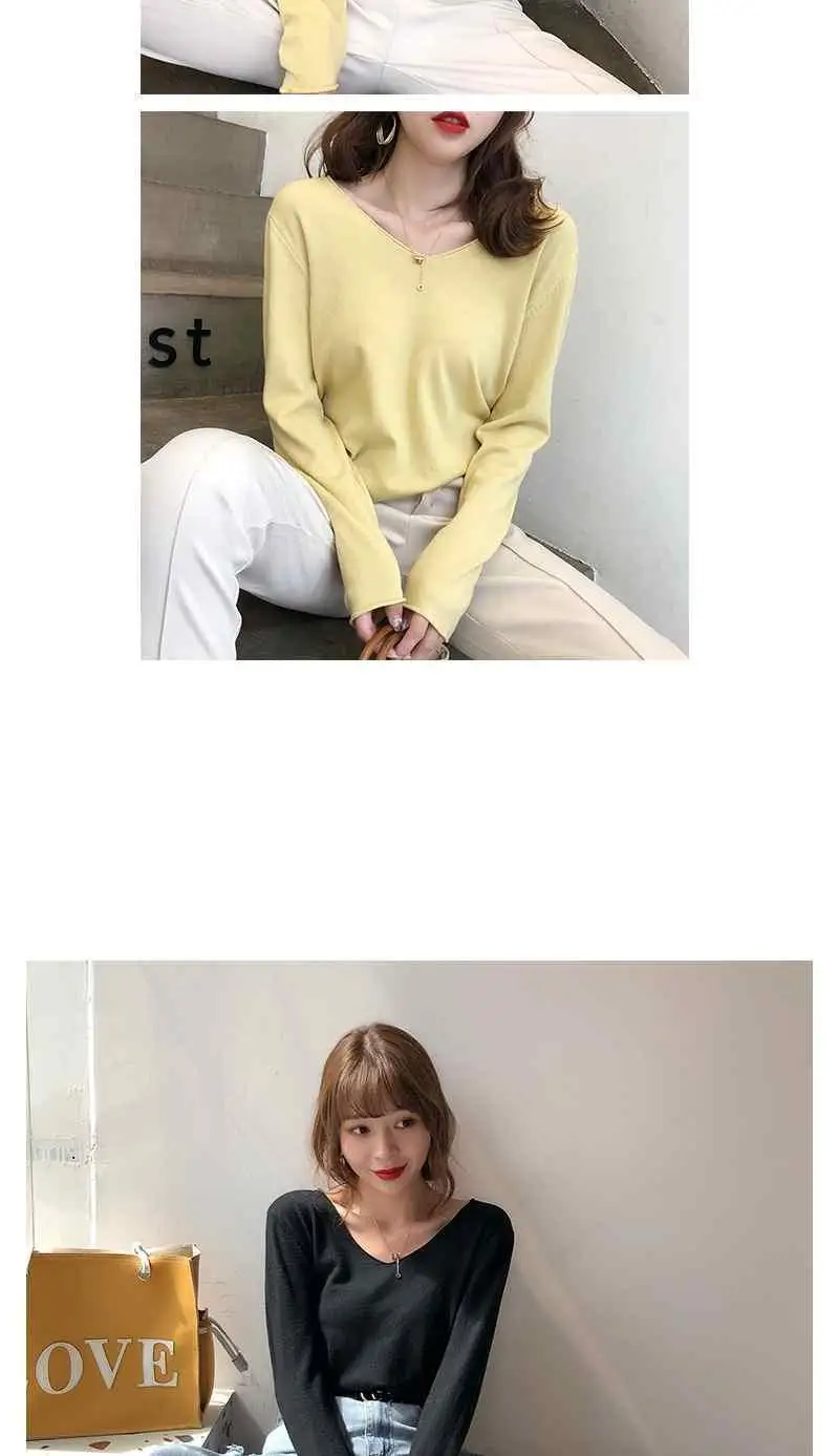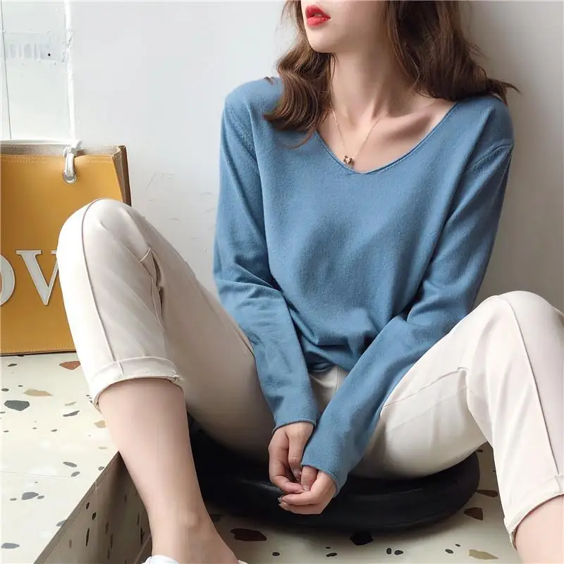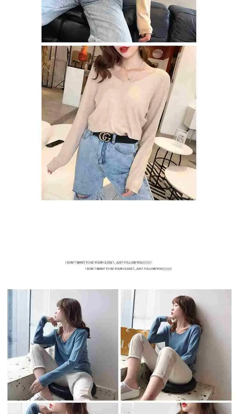 Новинка-грядущей весны Топы пуловер с вырезом в виде буквы V Свитер...