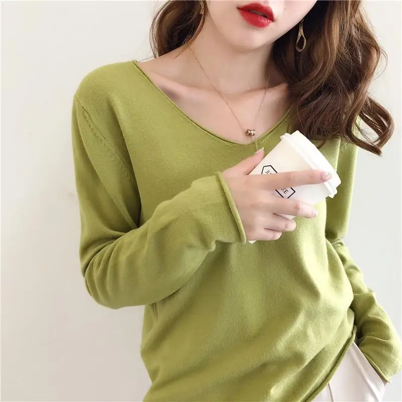 Женский свитер, пуловер, женский зеленый свитер с сердечником и V-образным вырезом, Свободный пуловер, свитер, вязаный кардиган, женские свитера