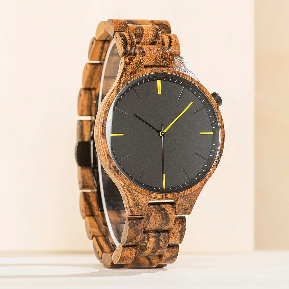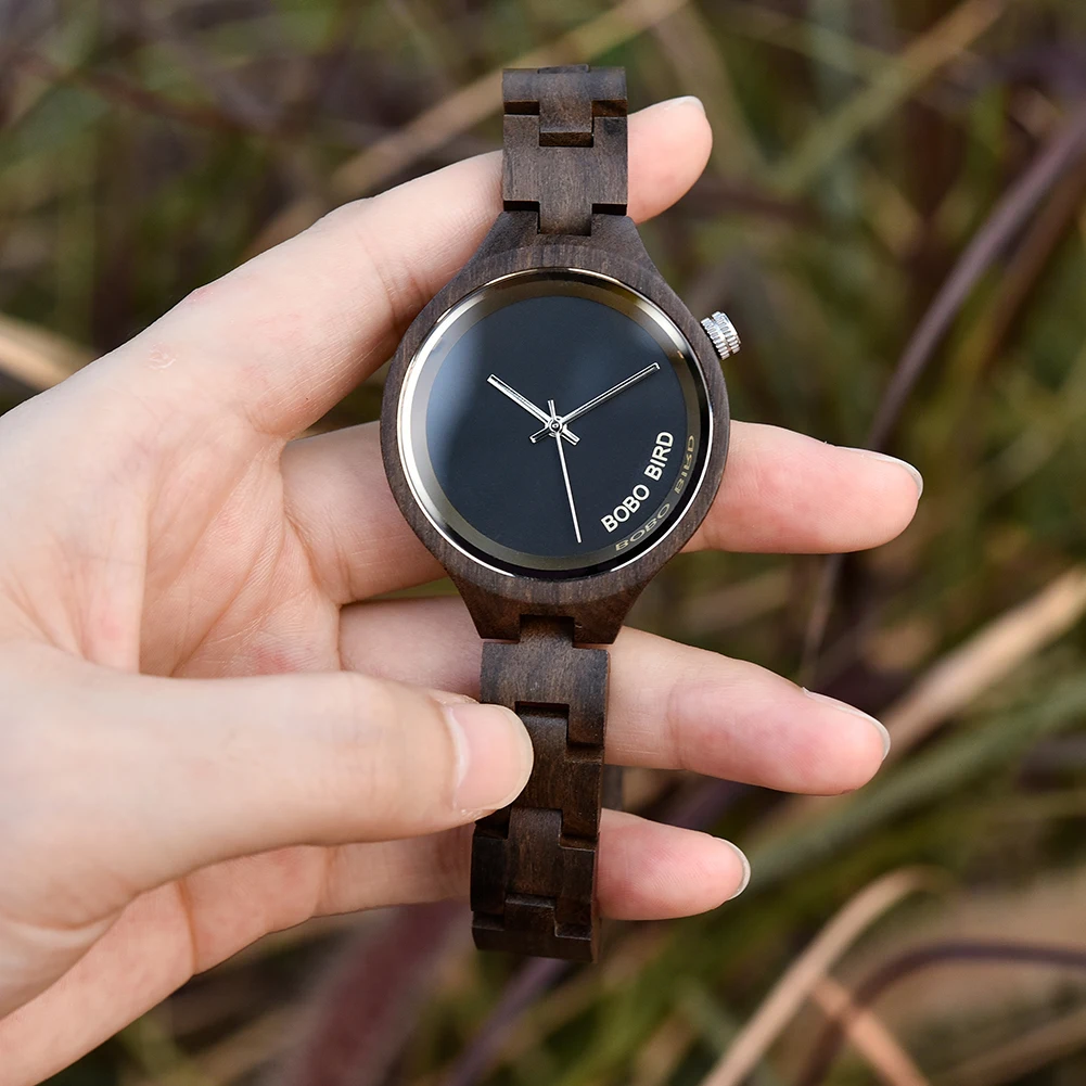 Использование натурального черного дерева, после ручного измельчения, народное искусство, сохраняет уникальные текстурные характеристики дереваBOBO BIR Топ класс деревянные часы бренд, японский кварцевый механизм, 30 метров водонепроницаемый для повседневной жизни
