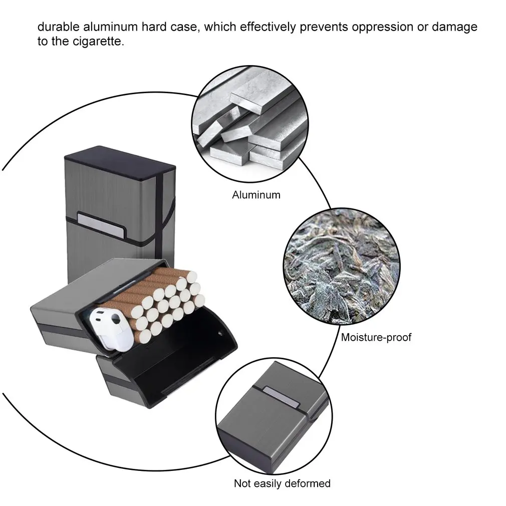 Прочный Алюминиевый жесткий чехол против нажатия или повреждения сигарет.