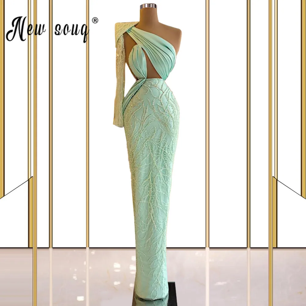 Блестящее зеленое вечернее платье русалки на одно плечо, украшенное бусинами, вечерние платья для выпускного вечера, африканские платья для торжеств