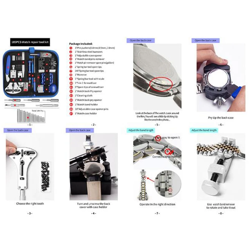Набор инструментов для ремонта часов, набор инструментов для ремешка для часов, открывалка для чехла с пружинным стержнем и чехол для переноски