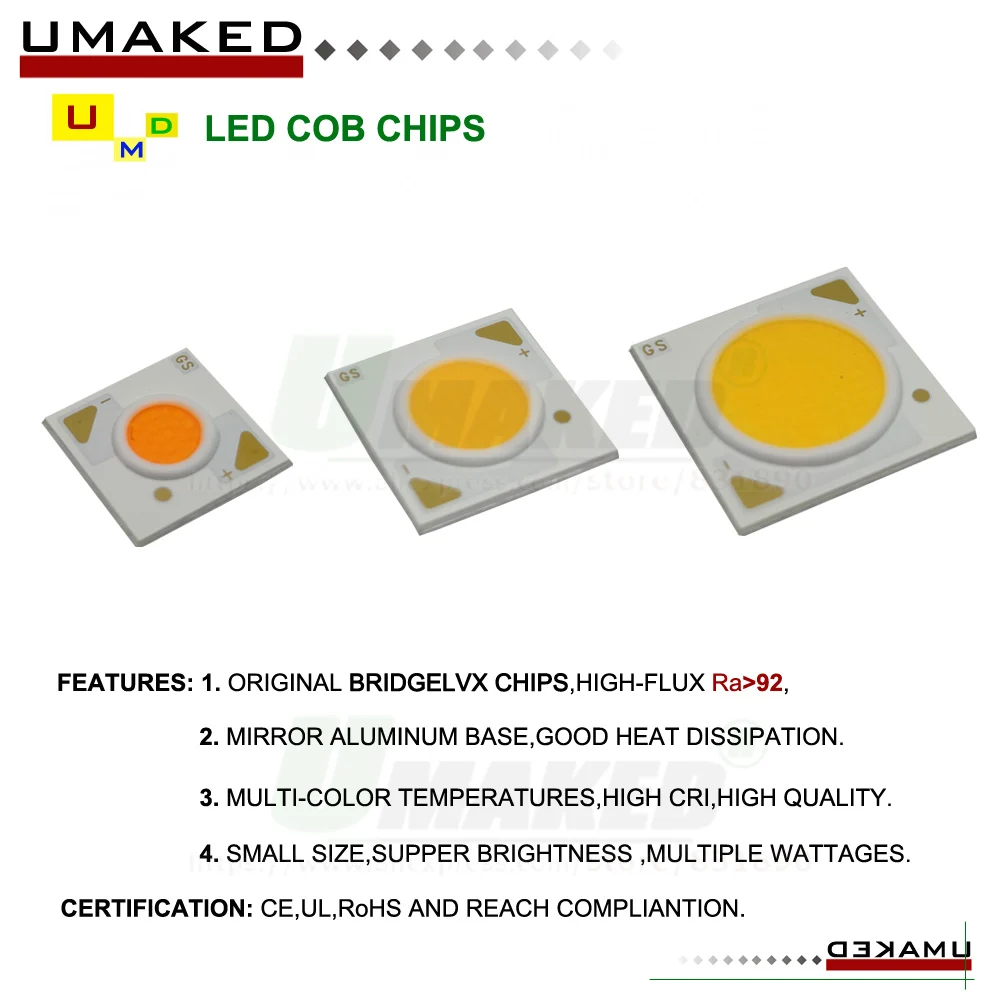 Светодиодный чип COB 18x35Mil 3 5 7 12 15 20 30 36 50 Вт CRI92 36 в...