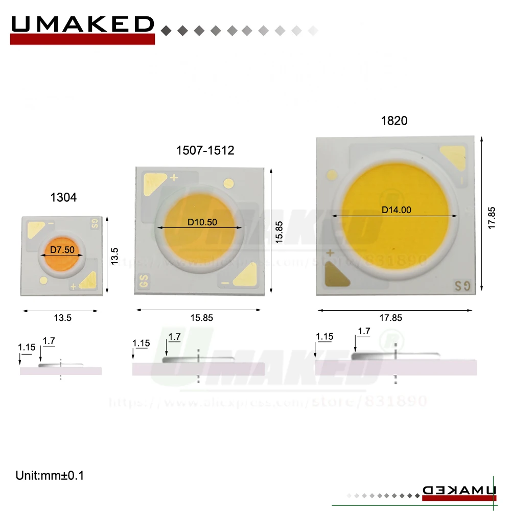20 шт. светодиодный COB 1313-18x35Mil, 3 Вт, 5 Вт, 7 Вт, 12 Вт, 15 ...