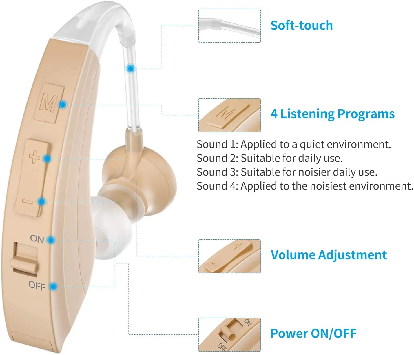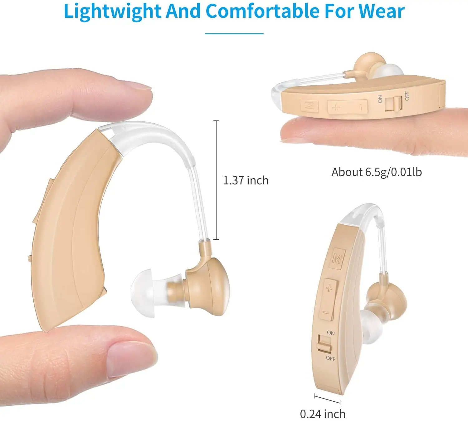Особенности:1. Поможет вам четко и громко слышать звук, будь то в помещении или на открытом воздухе.2. Удобно сидит за ухом и может использоваться как в ушах слева, так и справа.3. Идеально сидит за ушами и даже удобно носить с любой парой очков.4. Чувствительный Встроенный микрофон обеспечивает превосходное усиление. Идеально подходит для прослушивания телевизора, кинотеатра, театров, живой музыки и т. д.Описание:Легкий, удобный и удобный. Это отличный помощник, чтобы дать четкий звук. Прост в использовании.Характеристики:Цвет: бежевыйМатериал: силикон + пластикРазмер изделия: 8,7*2*19 смПосылка включает:1 * Усилитель слуха1 * жесткий пластиковый чехол для храненияПримечание:Пожалуйста, учитывайте погрешность в 1-3 см из-за ручного измерения и убедитесь, что вы не возражаете перед заказом.Цвет фактического товара может немного отличаться от приведенного выше изображения из-за различий в экране компьютера, спасибо за понимание.