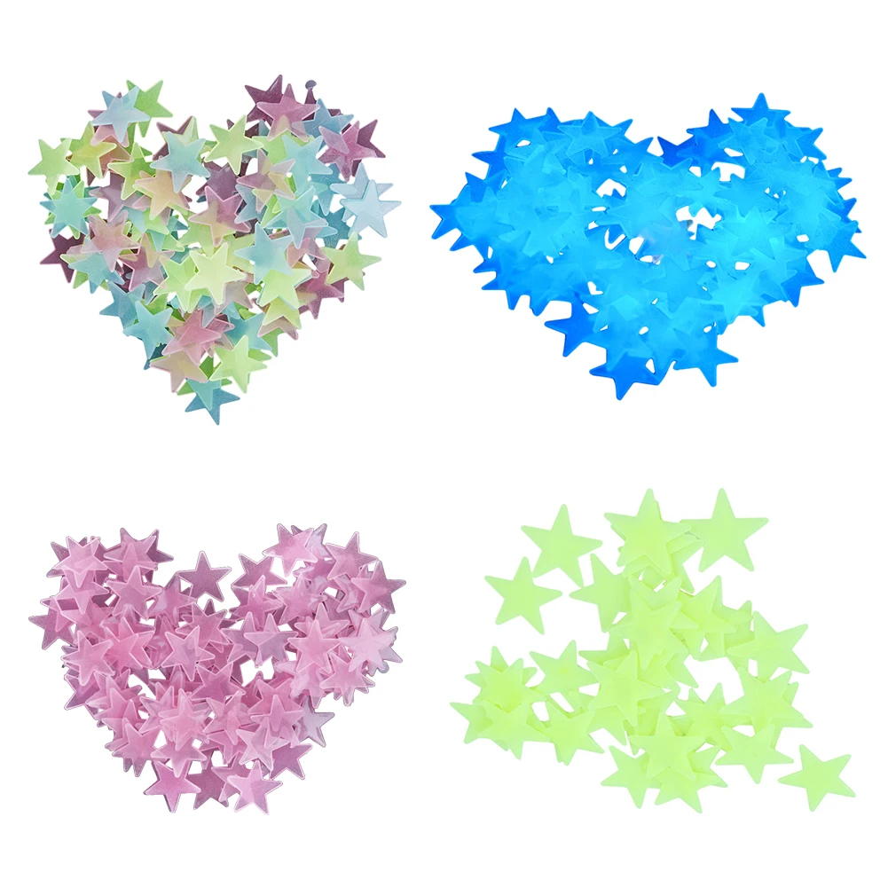 100 шт. 3 см 3D звезды светится в темноте настенные стикеры в виде ...