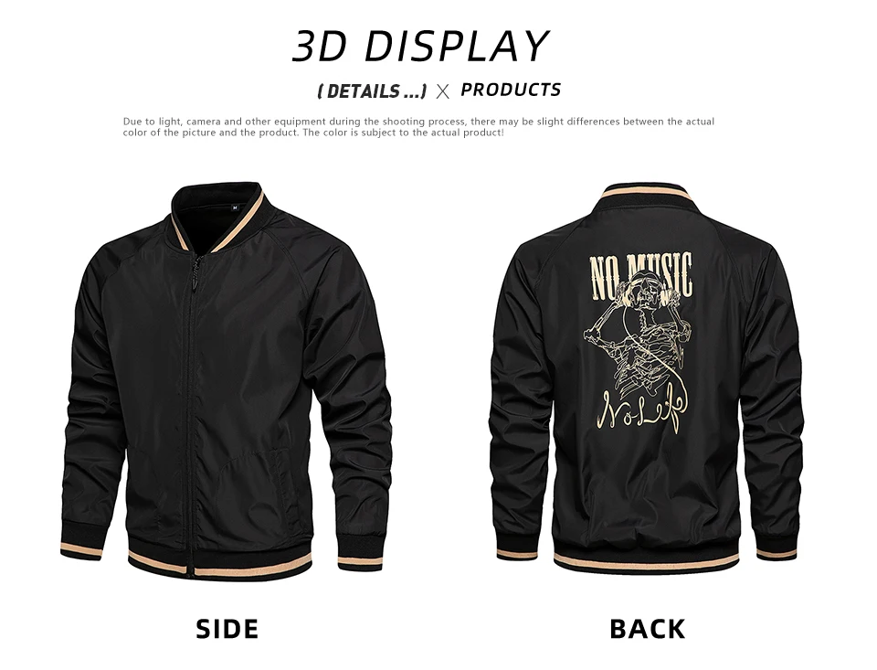 Мужская повседневная бейсбольная куртка, осенняя куртка-бомбер с пр...