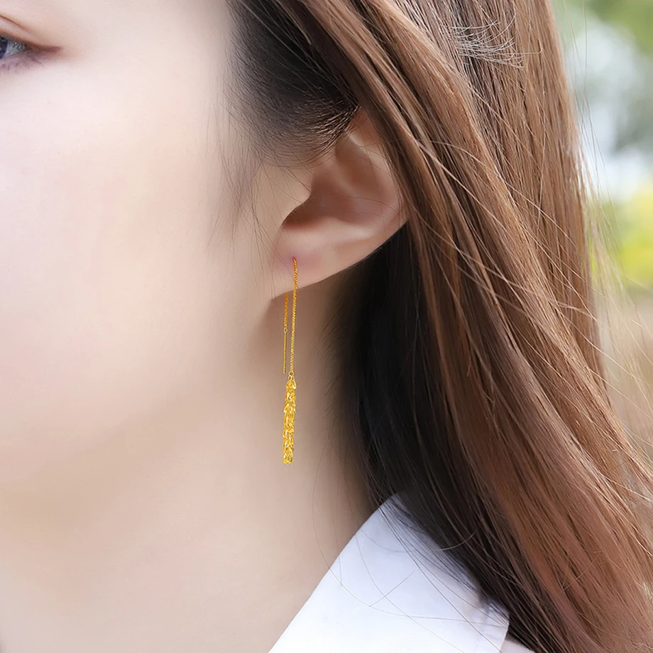 YUNLI настоящим 18К золото серьги в виде капель с простой хвост Феникса Дизайн Чистый AU750 кисточкой серьги для женщин, хорошее ювелирное изделие, свадебные подарки