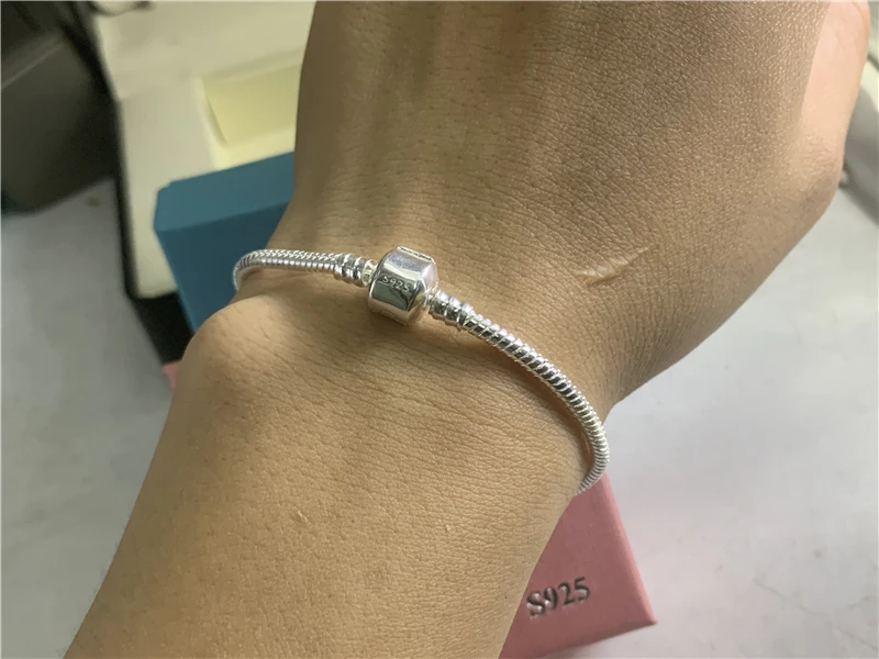 Браслет-змейка женский из серебра 100% пробы, с застежкой в виде сердца
