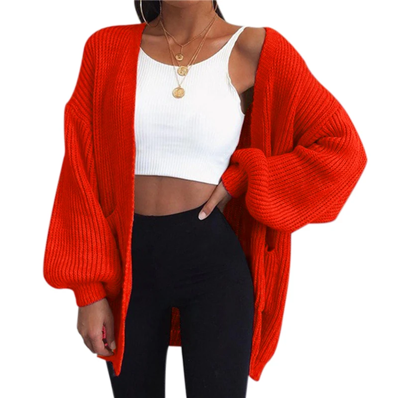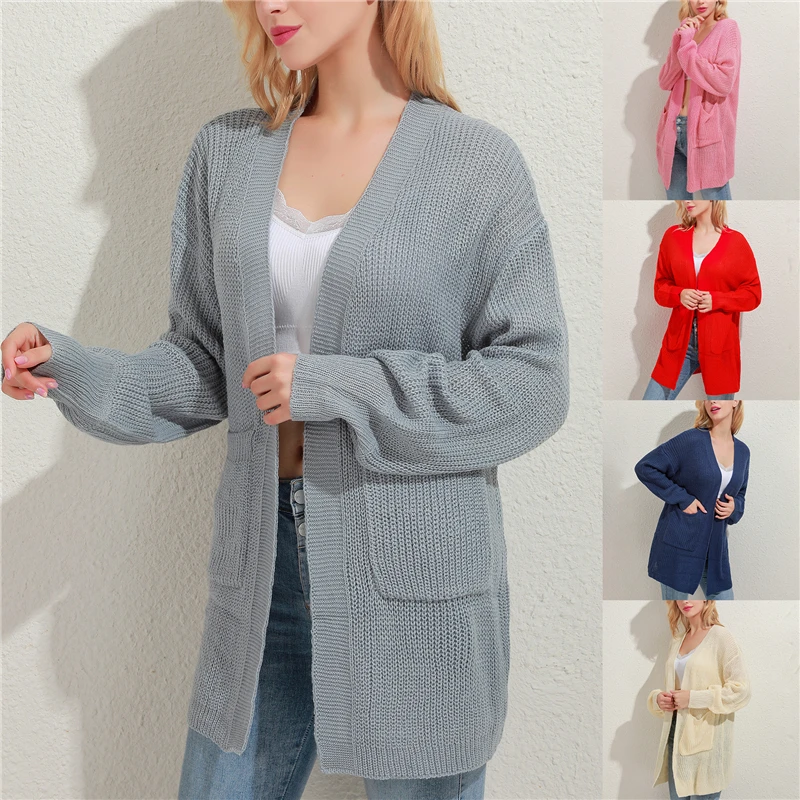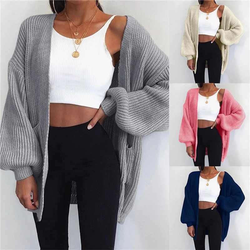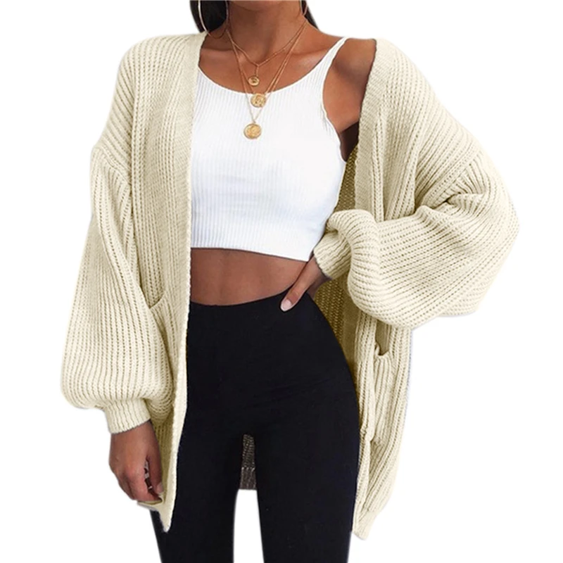 Свободный вязаный кардиган свитер для женщин 2021 новые свободные Открыть стежка с длинным рукавом Осенне-зимнее пальто однотонный Повседневный джемпер размера плюс пальто