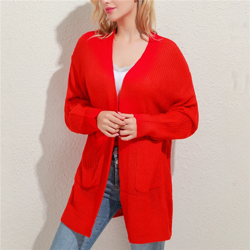 Свободный вязаный кардиган, свитер для женщин, новинка 2021, Свободное пальто с открытым рукавом, Осень-зима, однотонный Повседневный джемпер размера плюс