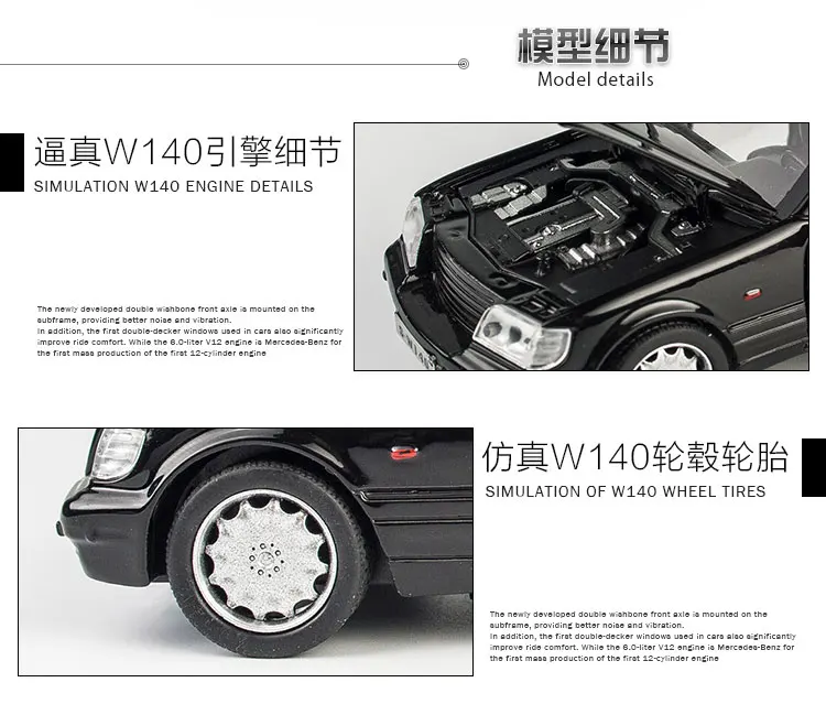 Модель автомобиля Mercede-Ben S W140 1:32, модель автомобиля из спл...