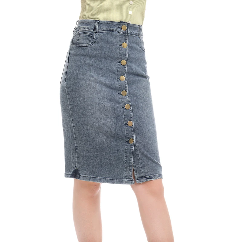 Женские джинсовые юбки на пуговицах с высокой талией, короткие джинсовые юбки с карманами, уличная стильная юбка-карандаш средней длины до колена, размера плюс
