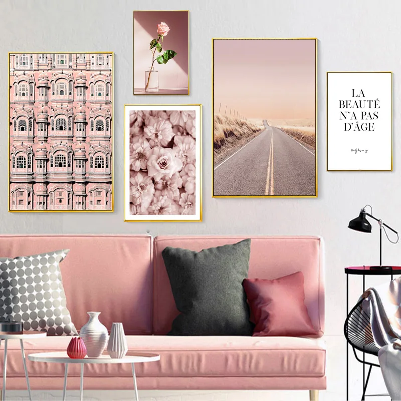 Исламские постеры на холсте с изображением двери здания, современные картины с изображением розовых цветов, пейзаж, настенные картины, скандинавские картины для декора гостиной