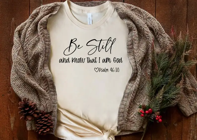 Футболка женская из 100% хлопка с надписью Be Still and Be God, I Am God, с круглым вырезом и забавным принтом