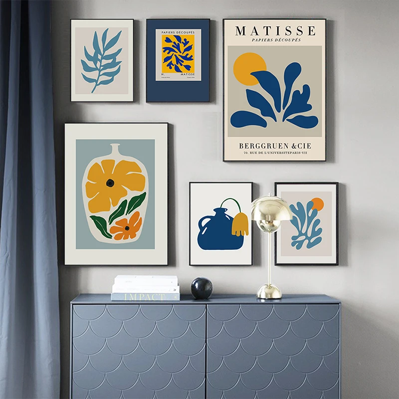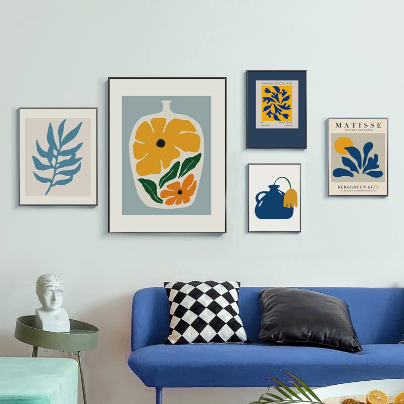 Картины на холсте с абстрактным изображением Анри Матисса, настенные декоративные картины с цветами для гостиной, синий домашний декор