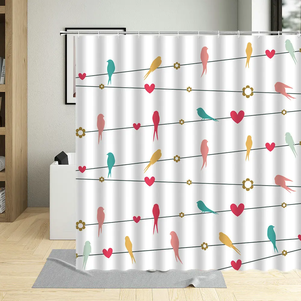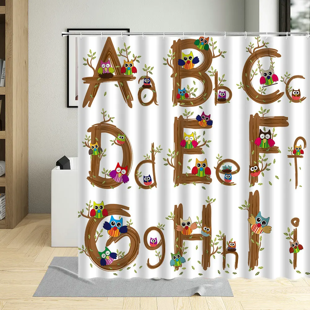 Занавеска для душа с мультяшными животными, птицами, ручная роспись, кот, динозавр, буквы, Детские занавески для ванной комнаты, декоративный Комплект для ванной комнаты