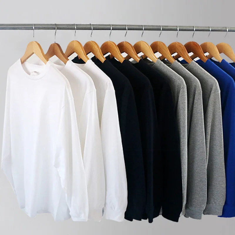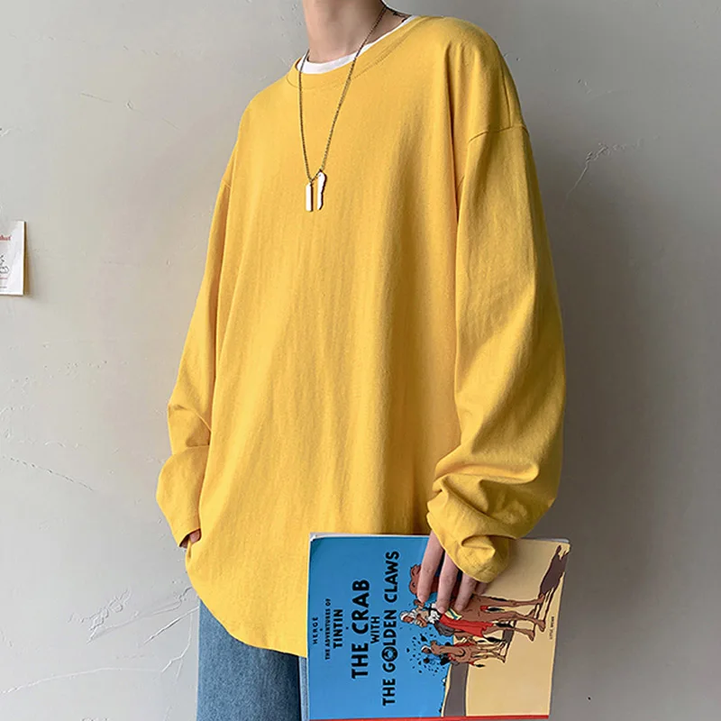 Футболка мужская базовая с круглым вырезом, Повседневная Свободная рубашка из 100% хлопка, с длинным рукавом, 4XL 5XL, весна-осень