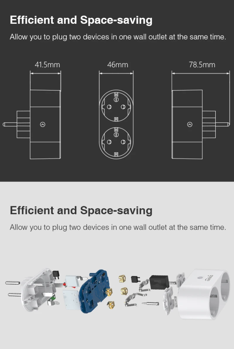 Одна вилка может расширить два гнезда устройства, а две розетки можно управлять независимо для управления одним устройством по отдельности.