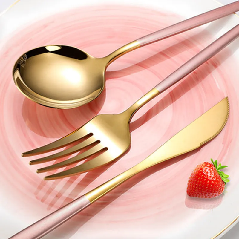 Набор золотой посуды из нержавеющей стали, 24 шт.компл., розовое зо...