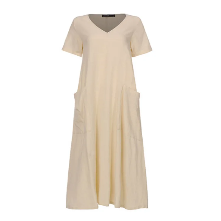 Платье женское длинное из хлопка и льна, Повседневная Удобная свобо...