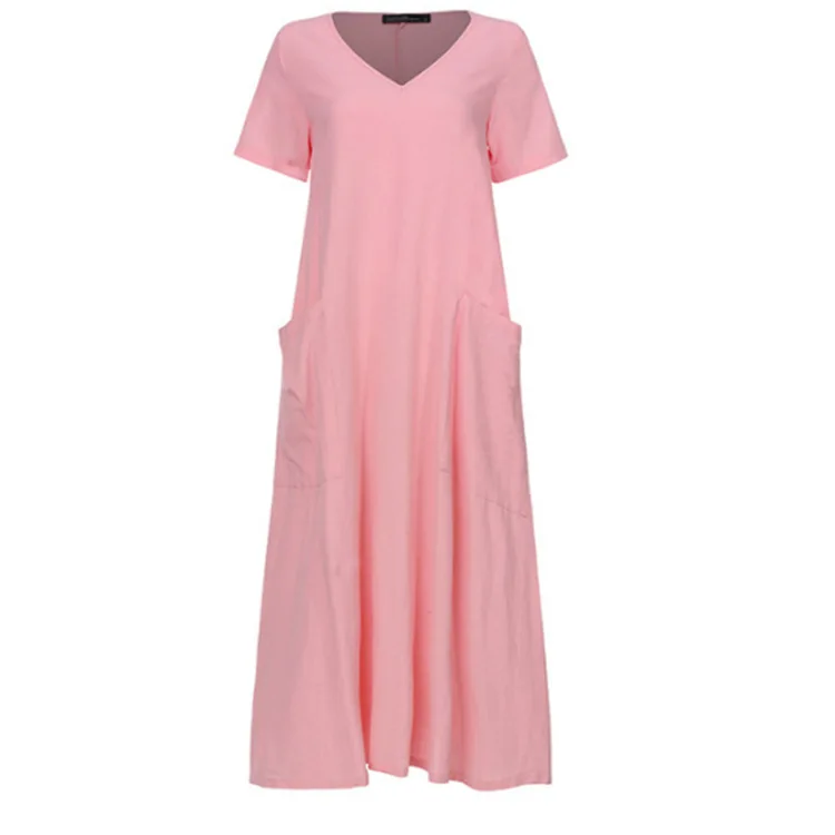 Платье ZANZEA женское длинное из хлопка и льна, повседневное плявеч...