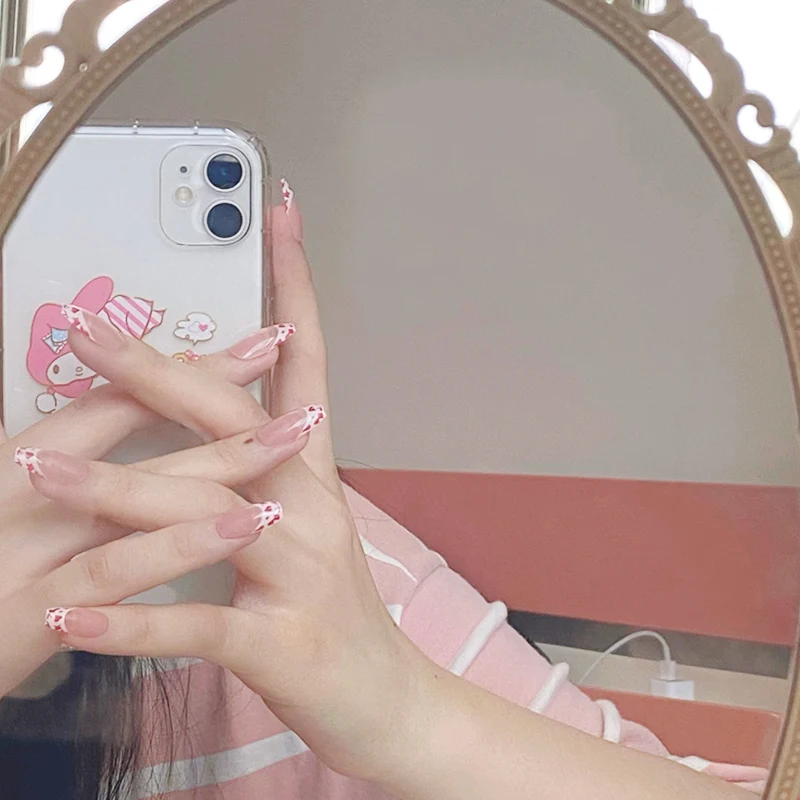 Накладные предварительно Украшенные ногти, милая пудра, патчи для ногтей с леопардовым принтом, блестящие ногти, носимые товары для дизайна ногтей, 24 шт. с клеем