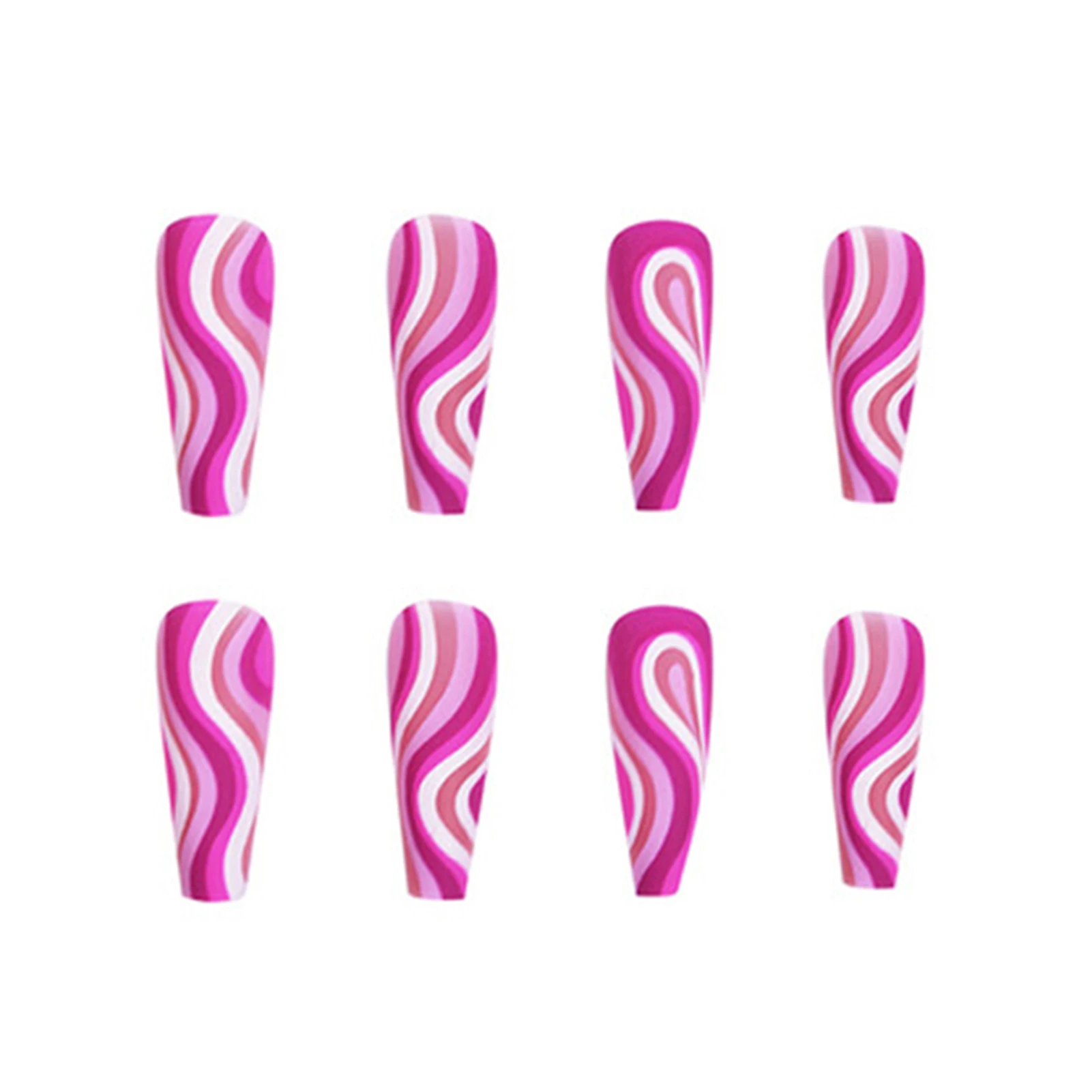 24 шт., накладные ногти с дизайном, белые, фиолетовые волнистые ногти, длинный абзац, модная Накладка для маникюра, накладные ногти, бесплатная доставка, дизайн ногтей
