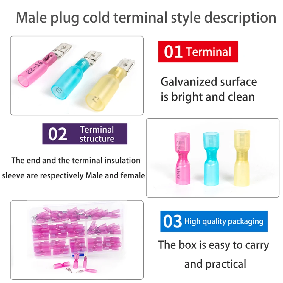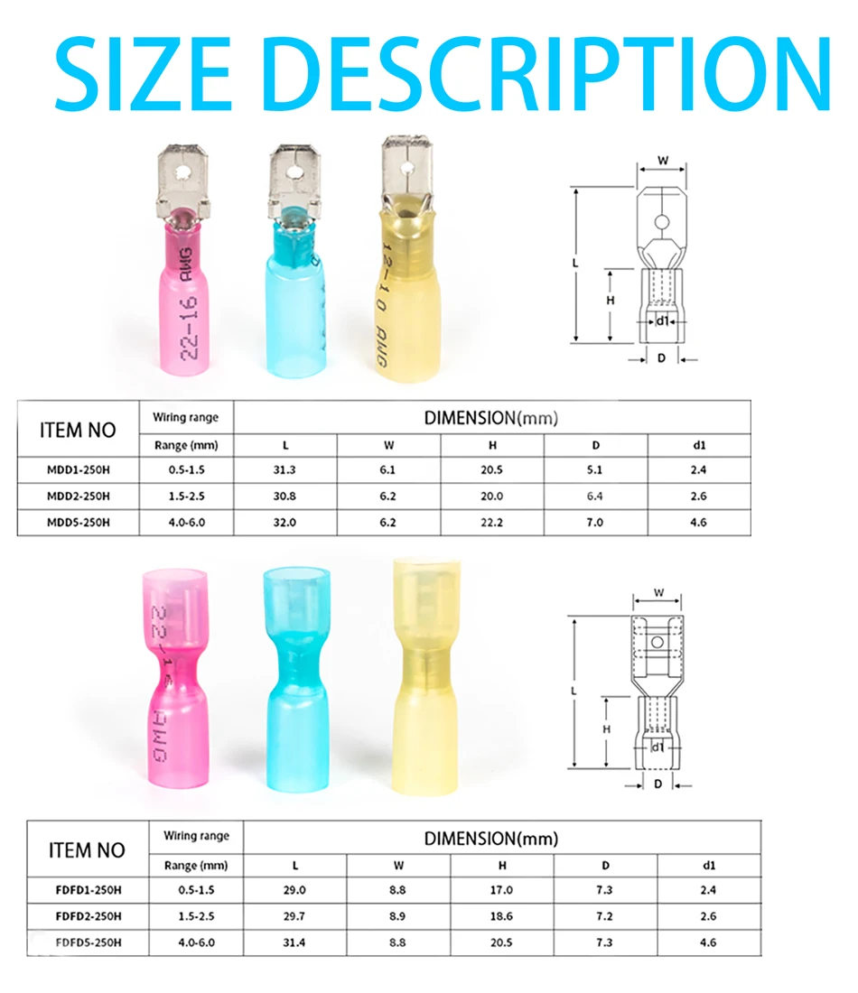 100 шт.кор. MDDFDD spade терминал термоусадочный комплект обжимных клемм изолированный стыковой провод соединитель кабеля гнездовой конец стык