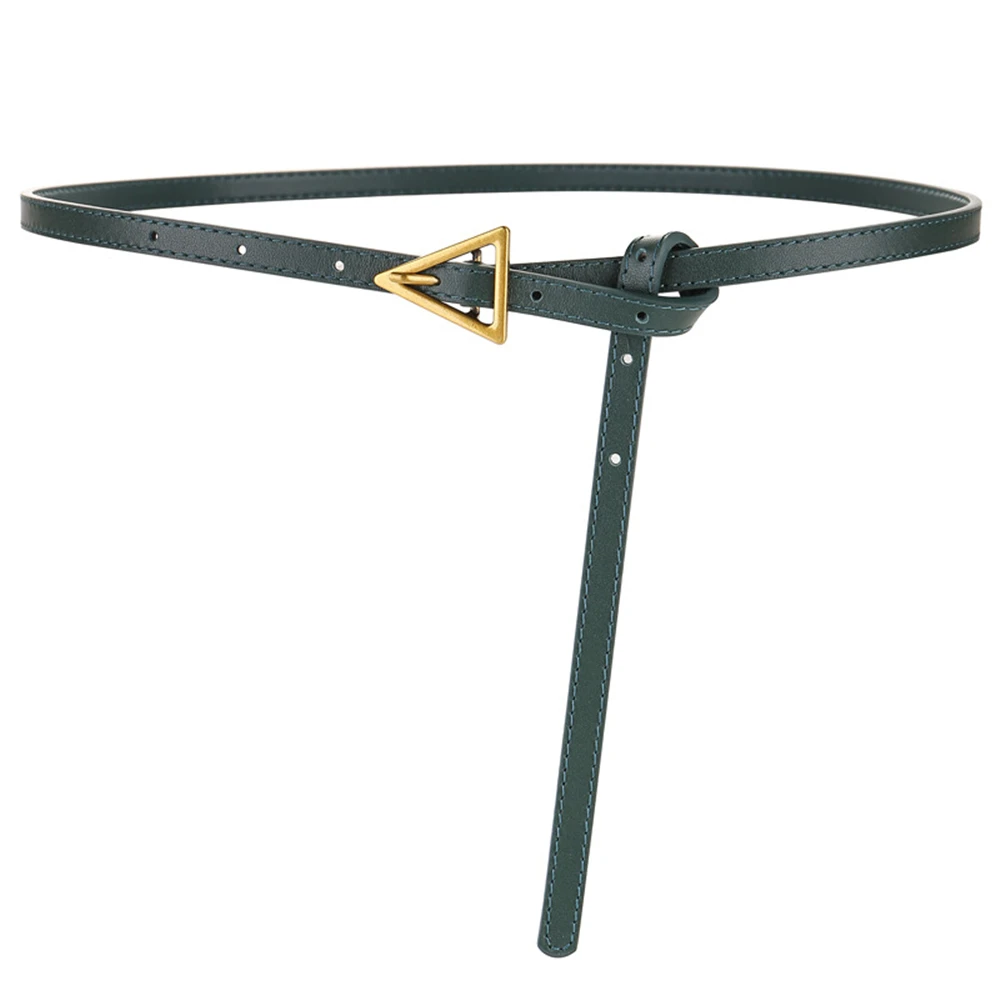 Хаки женские ремни из натуральной кожи пояс первого Слои натуральная кожа крупного рогатого скота с тонким ремешком и открытым треугольная Пряжка женская одежда ремень 105 см 115