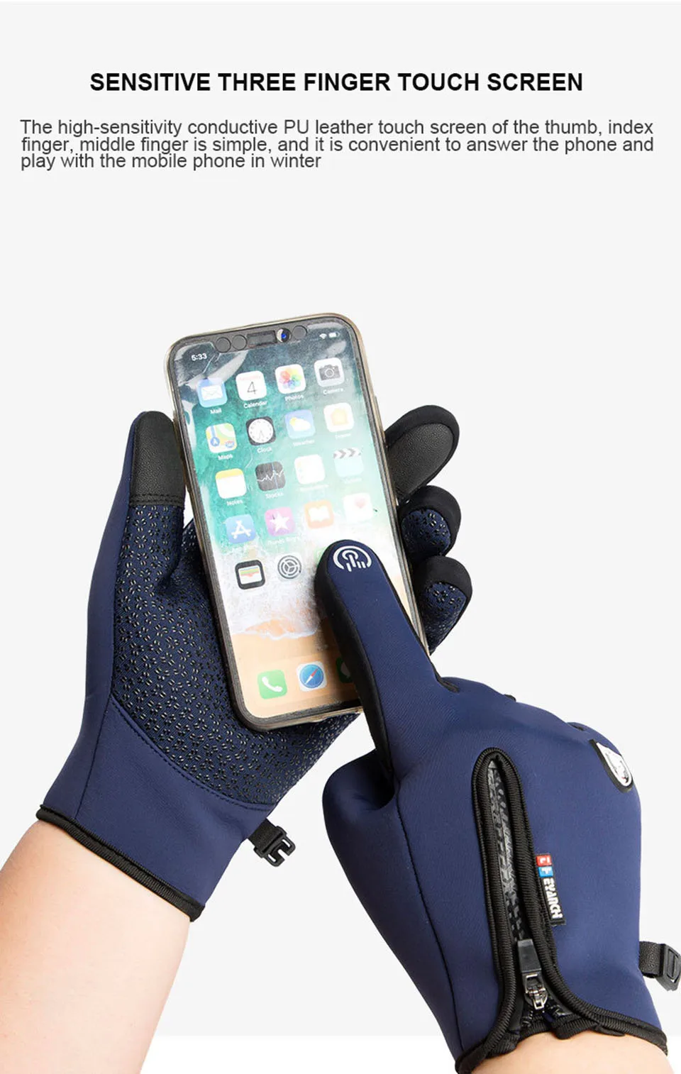 Нескользящие и износостойкие зимние теплые перчатки для чувствитель...