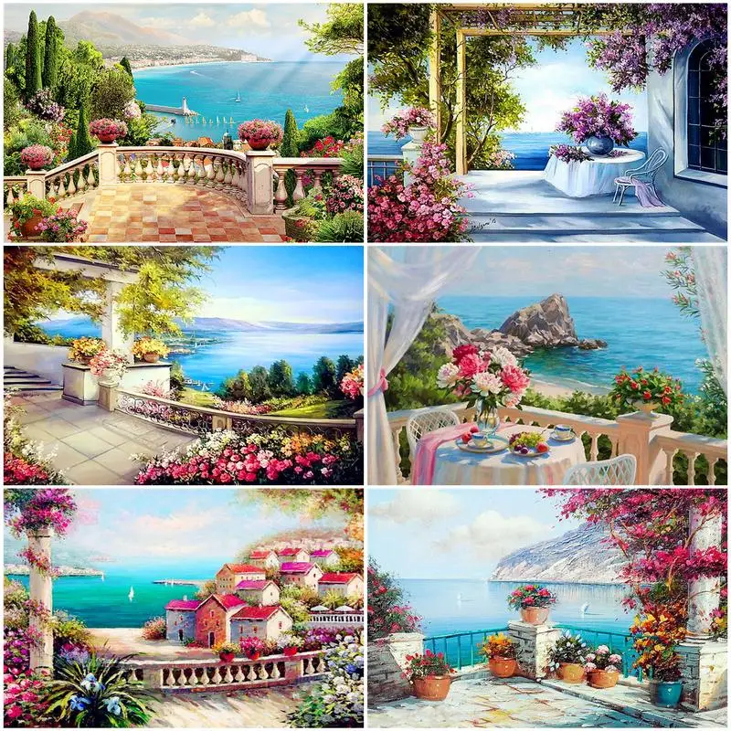 Картины GATYZTORY по номерам, побережье, пейзаж, Краска на холсте, краска маслом, цветы, ручная роспись, украшение для дома