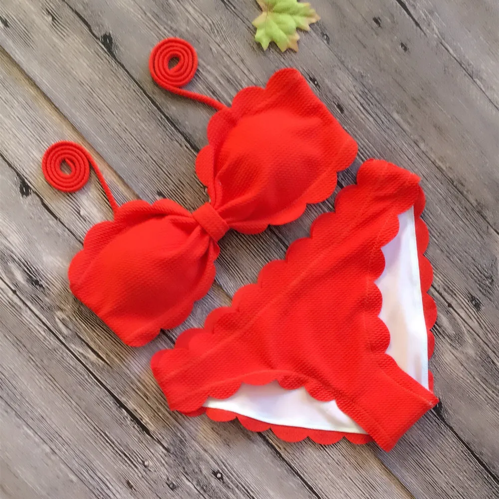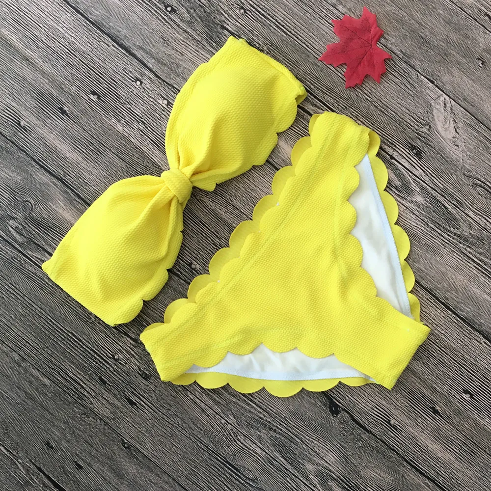 Купальник-бикини женский, желтый, синий, розовый, черный, красный, кружевной, купальный костюм для пляжа, пляжный комплект бикини с низкой талией, 2021