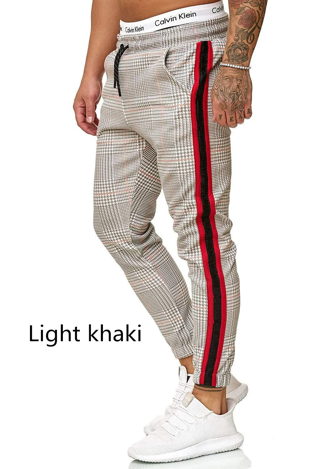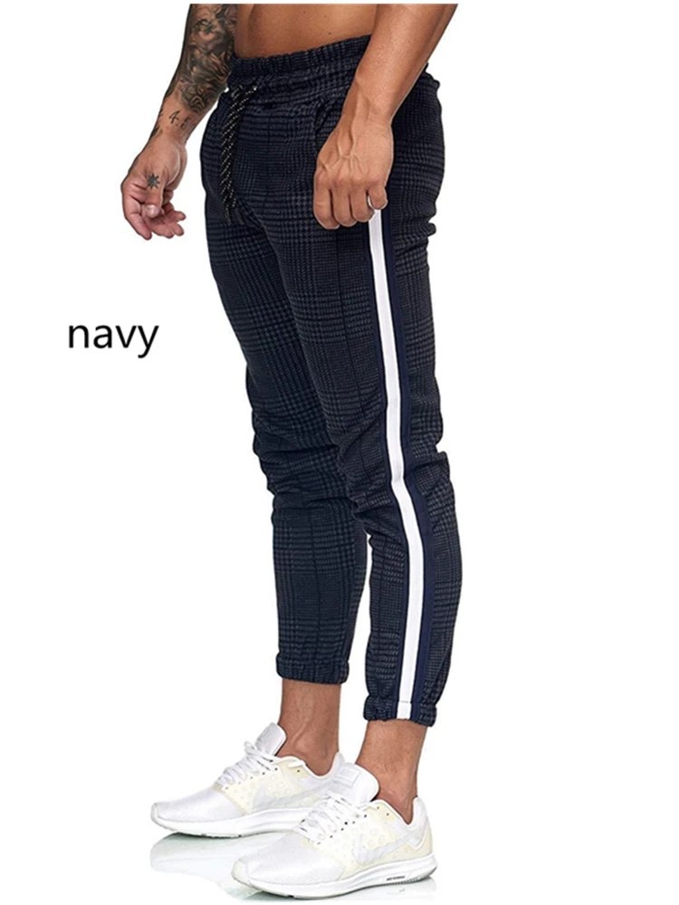 Мужские брюки-карандаш, повседневные, спортивные, зауженные, в клетку, с полосками сбоку, длинные брюки для бега, S-3XL