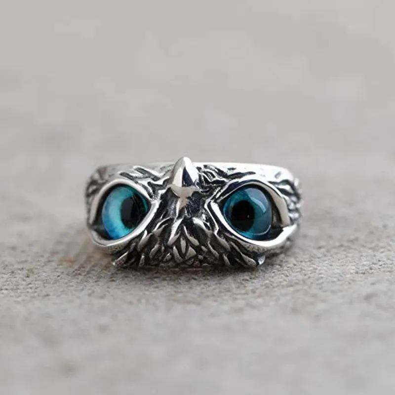 Оригинальное синее кольцо кошачий глаз Сова для женщин и мужчин винтажное уникальное симпатичное кольцо животное
