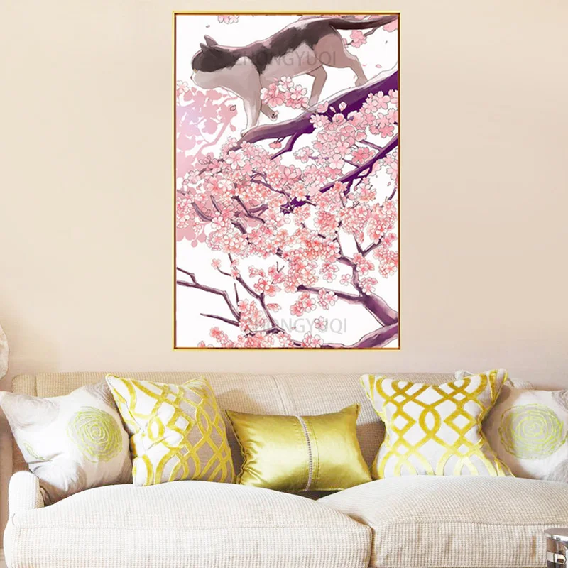 Настенные художественные принты, Постер в японском стиле, цветок вишни, пейзаж, холст, живопись, кошка, розовые постеры и принты для гостиной icon star icon star icon star icon star icon star