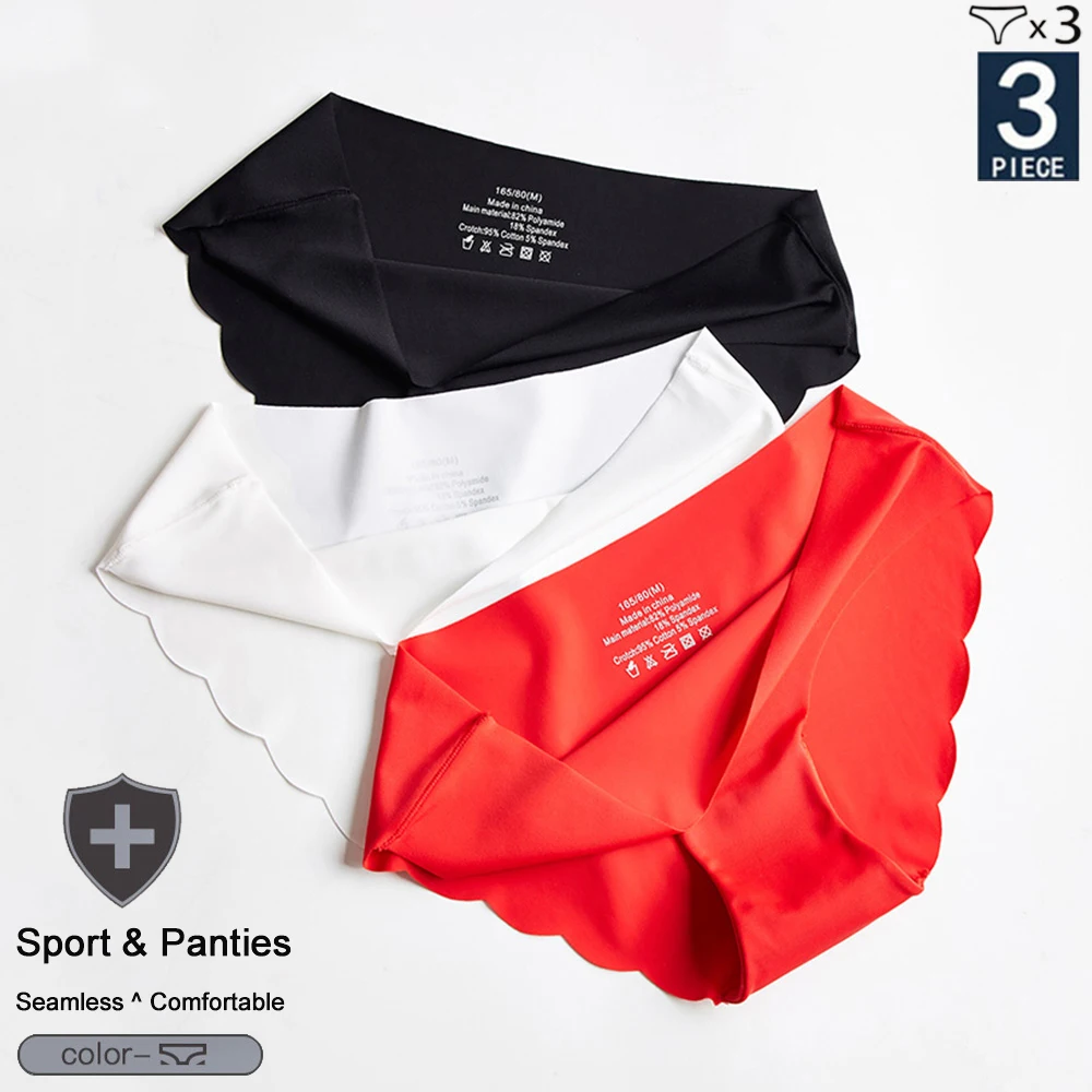 3 шт.компл. пикантные однотонные Ice Silk трусы комплекты для Для женщин сексуальное нижнее белье женские бесшовные трусики хлопок с низкой посадкой, трусы, нижнее белье, чашечки расположены рядом