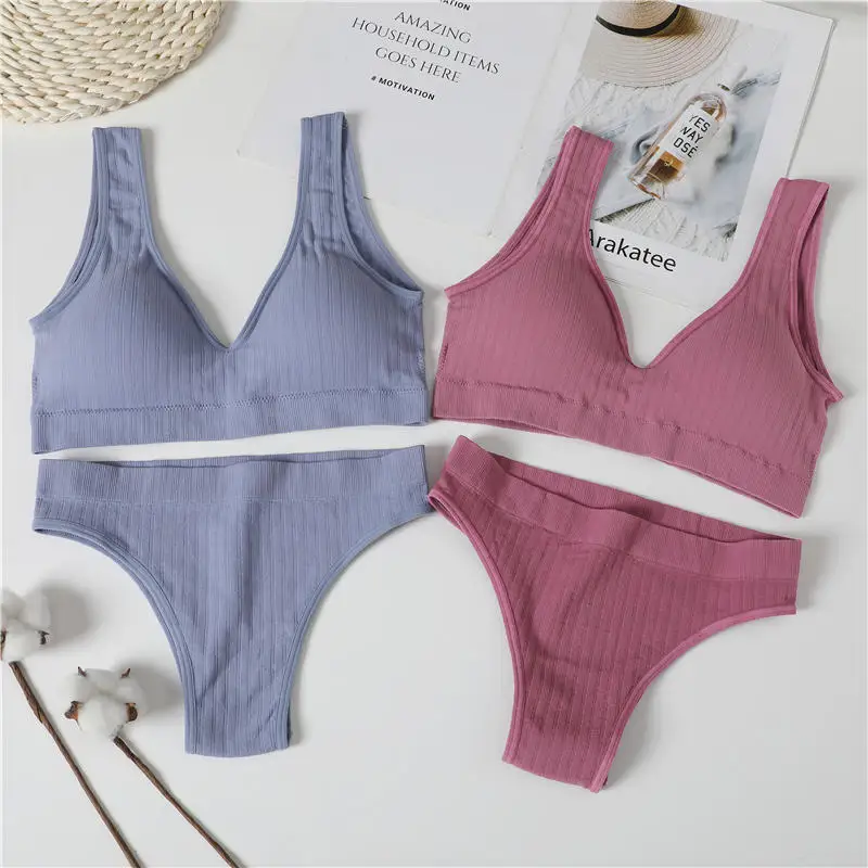 Женское сексуальное нижнее белье, комплект с бюстгальтером, бюстгальтер без косточек с глубоким V-образным вырезом и низкой талией, нижнее белье без косточек с чашками пуш-ап, спортивный топ с широкими бретелями, интимное женское белье, Новинка