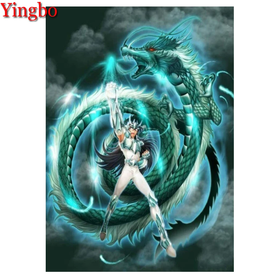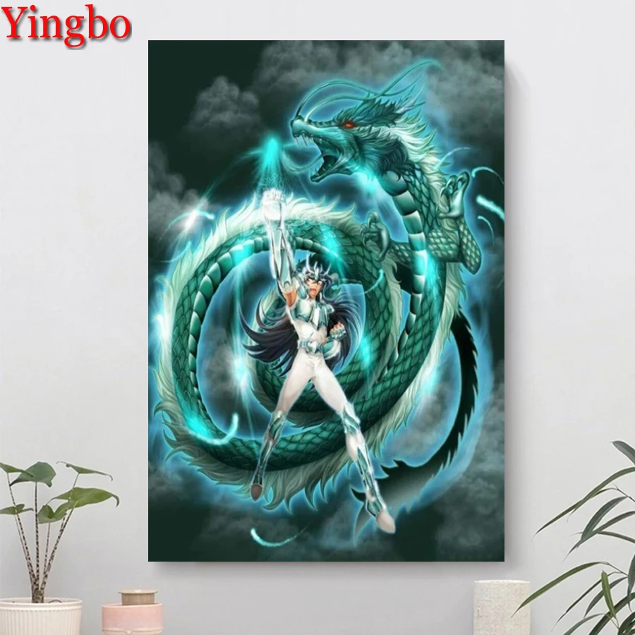 DIY 5D алмазная картина аниме самурай и дракон полная циркулярная дрель вышивка крестиком Стразы декоративная живопись