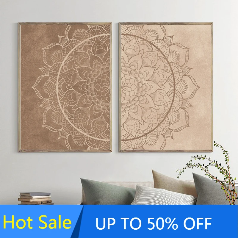 Мандала настенные картины нейтральный Цвет коричневого цвета в стиле бохо, постеры с живописным изображением пейзажа на холсте и принты Спальня украшения Йога подарок декор