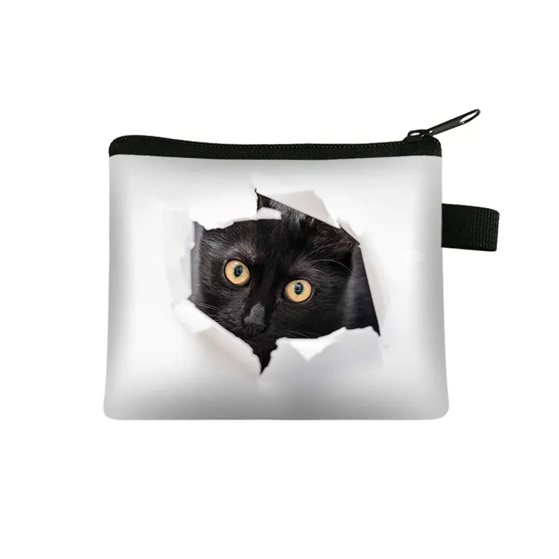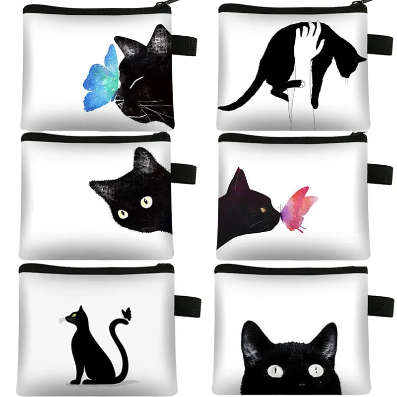 Милый кошелек для монет с принтом черного кота, Женская портативная мини-сумка для покупок, дорожная сумка для монет, удостоверения личности, кредитных карт, кошелек