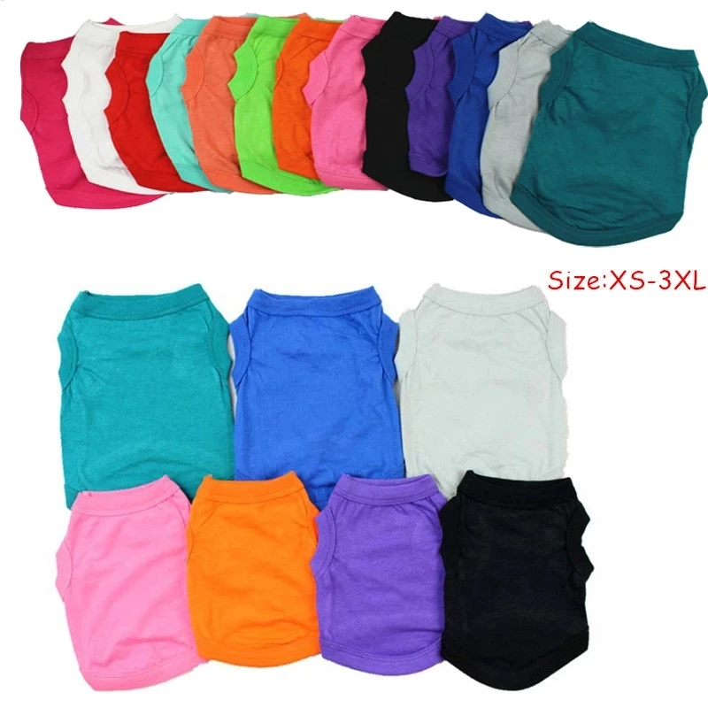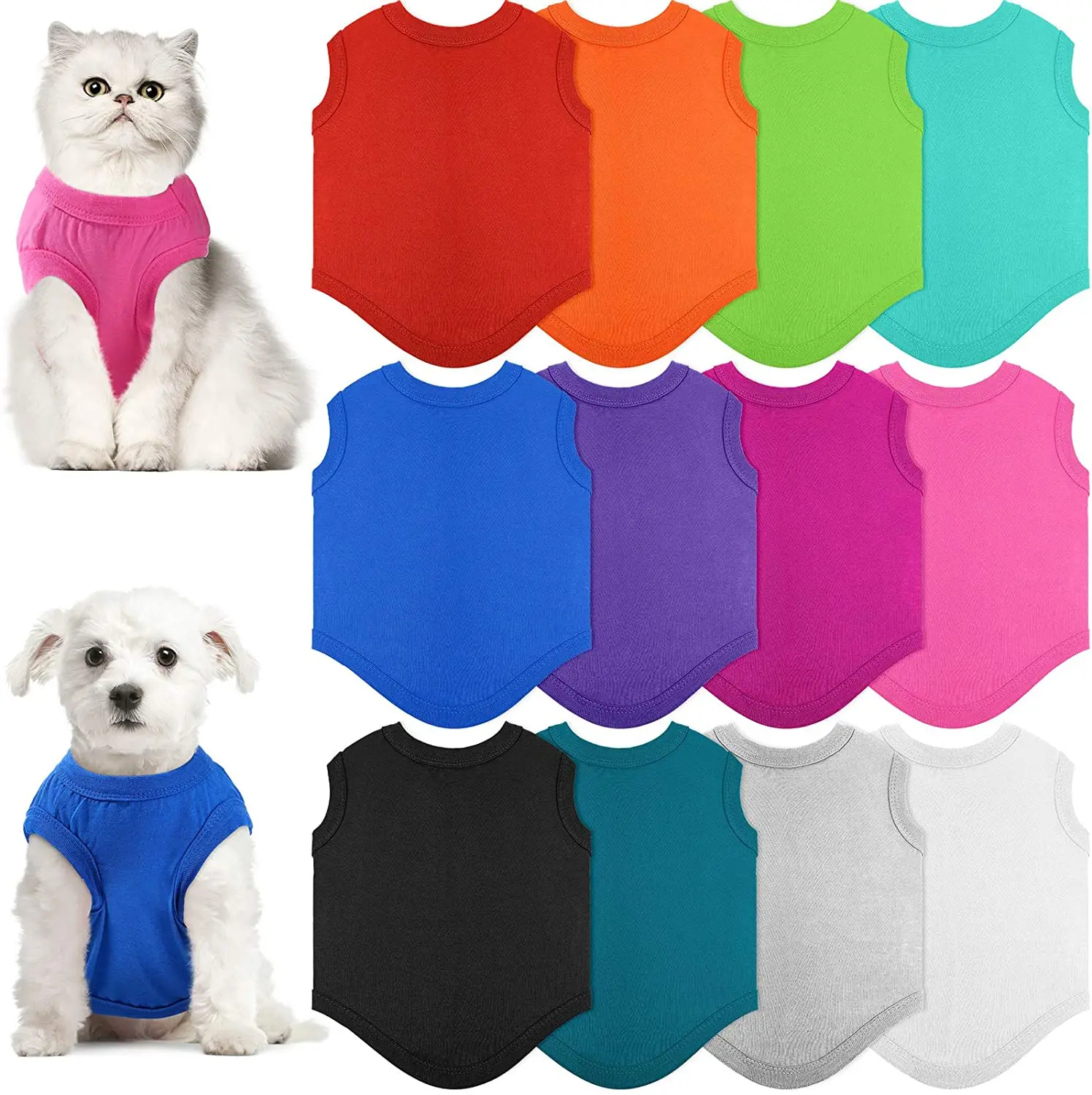 Летняя одежда для домашних питомцев, однотонная хлопковая футболка для маленьких и средних собак, аксессуары для домашних питомцев, жилетка для кошек