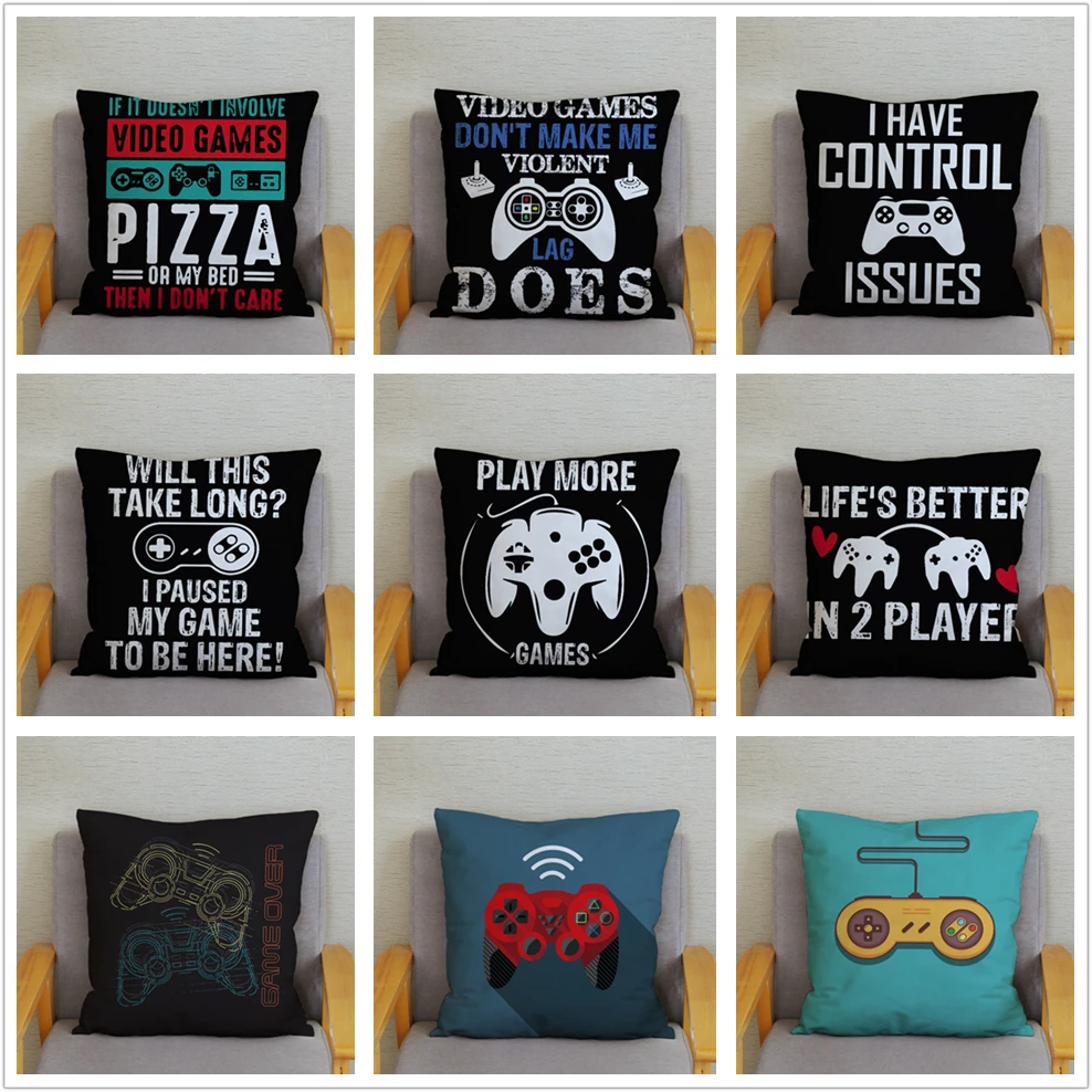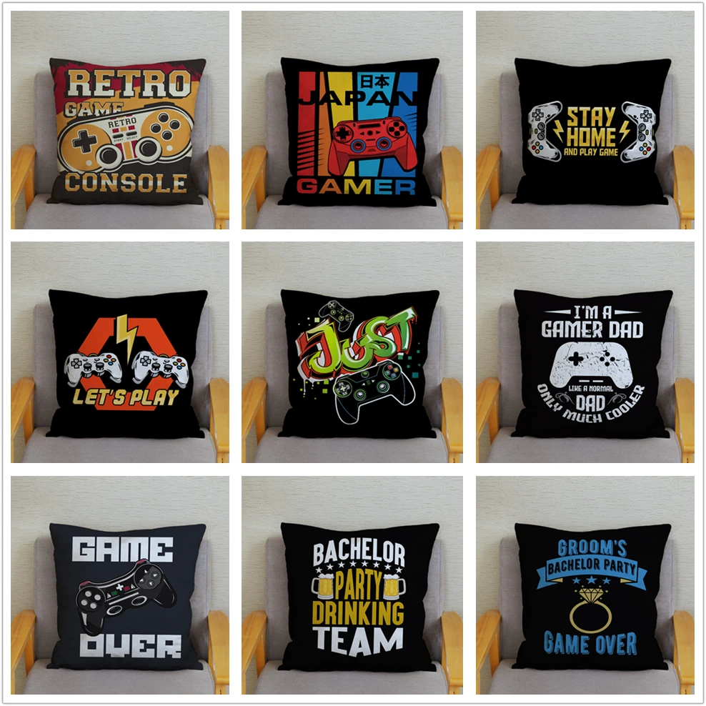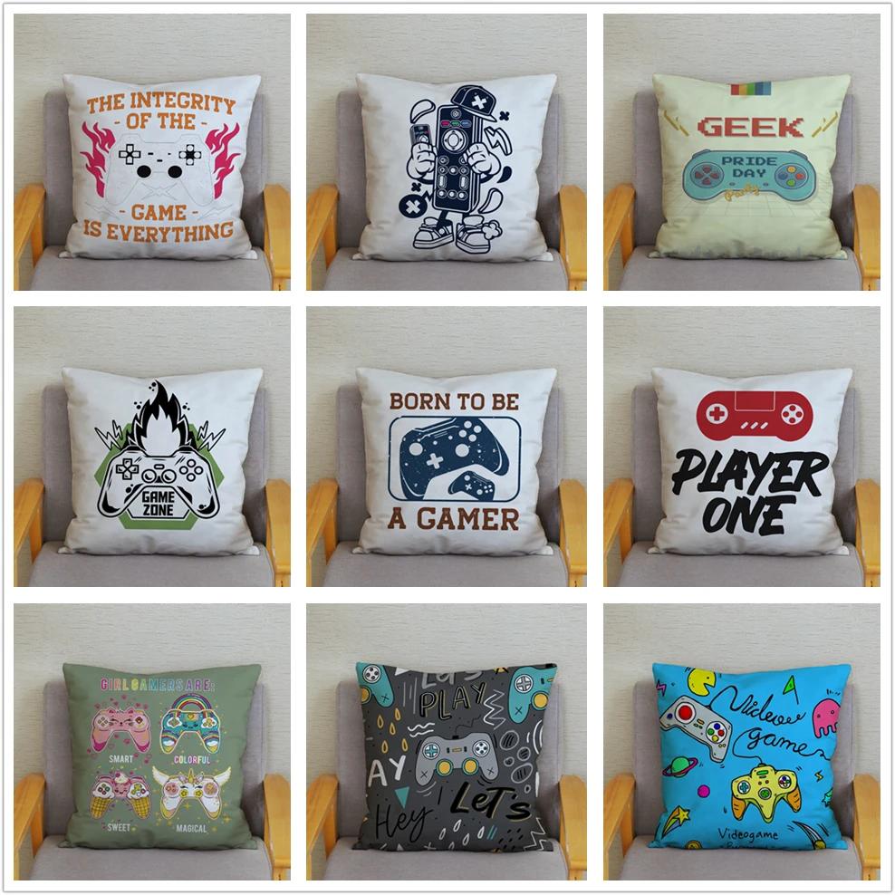 Модная наволочка с принтом для геймпада, квадратная наволочка с мультяшными буквами, чехлы из мягкого полиэстера для подушек, дивана, автомобиля, украшение для дома