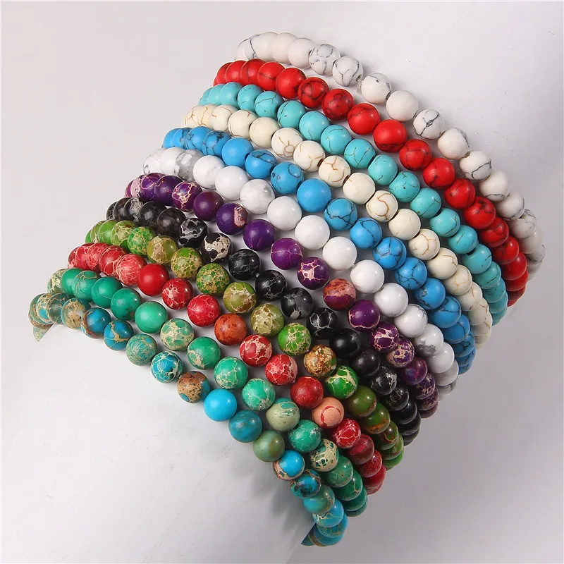 6 мм бисер браслет для женщин и мужчин Натуральный Камень Бирюза Императорский Ясперс бусины энергия Стрейч Йога браслет, бижутерия в подарок