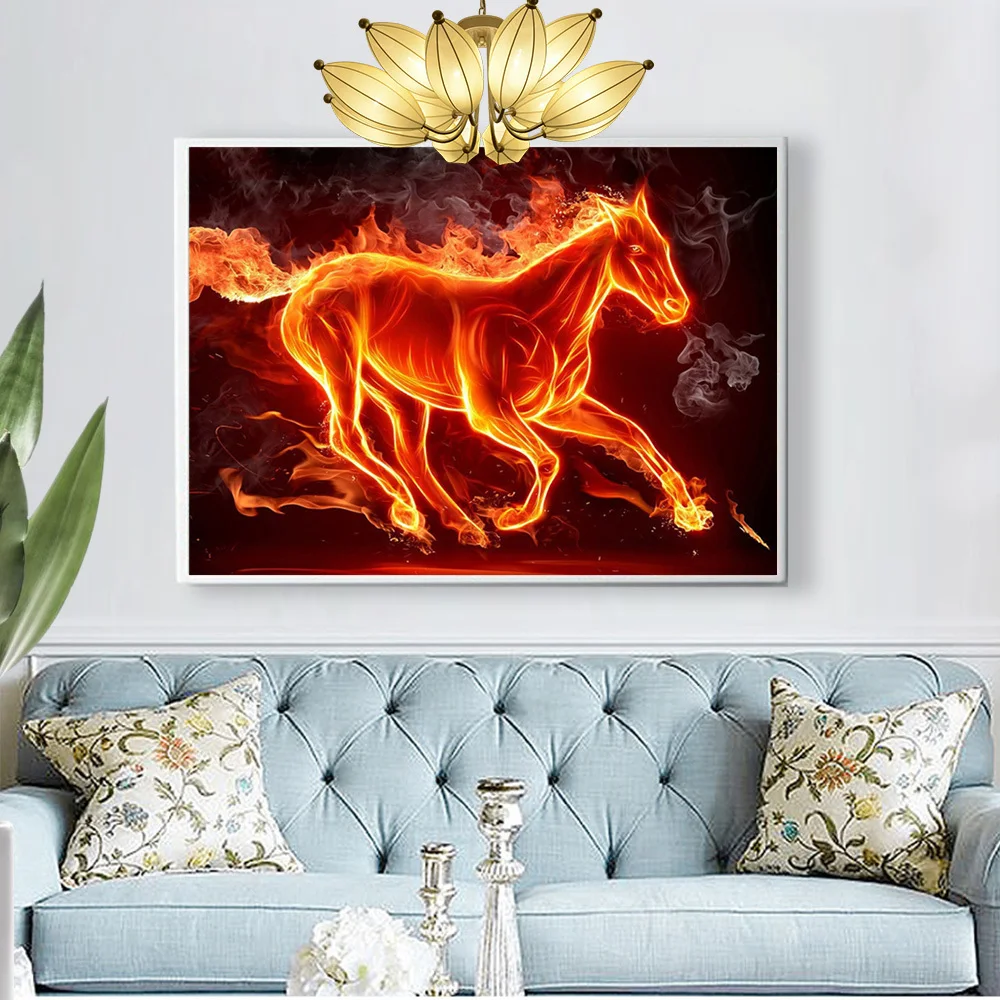 Алмазная живопись HUACAN, Новое поступление, лошадь, огонь, домашний декор, мозаика, животное, вышивка, фэнтезийное алмазное искусство