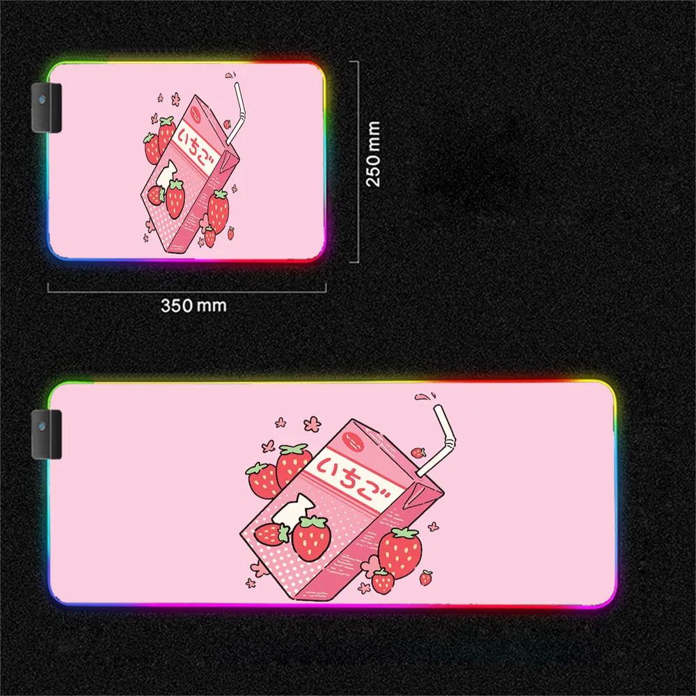 Kawaii коврик для мышки с аниме розовый молочный напиток RGB игровая аксессуары USB Противоскользящий коврик для геймера Тетрадь ПК клавиатура светодиодный подсветкой столы